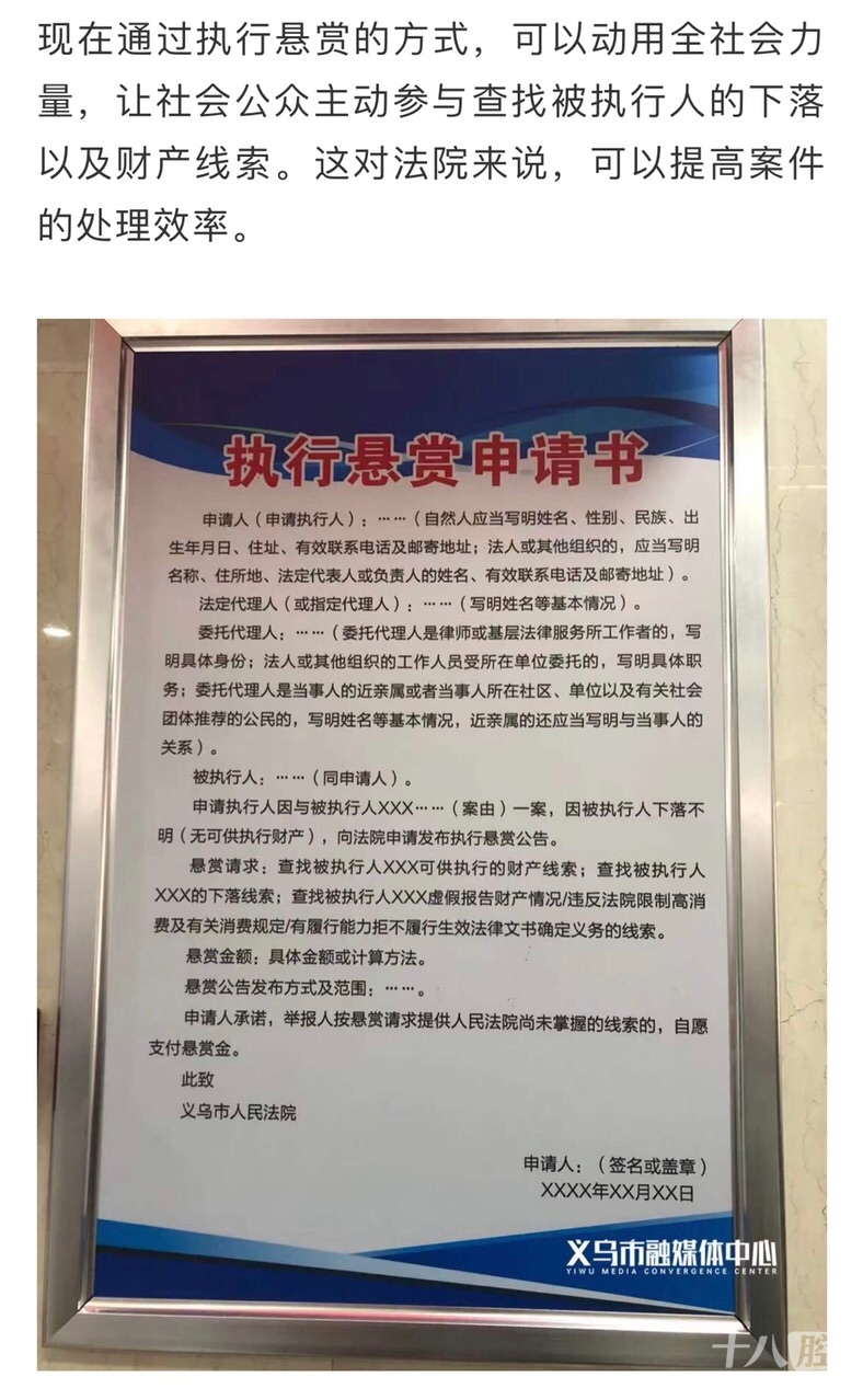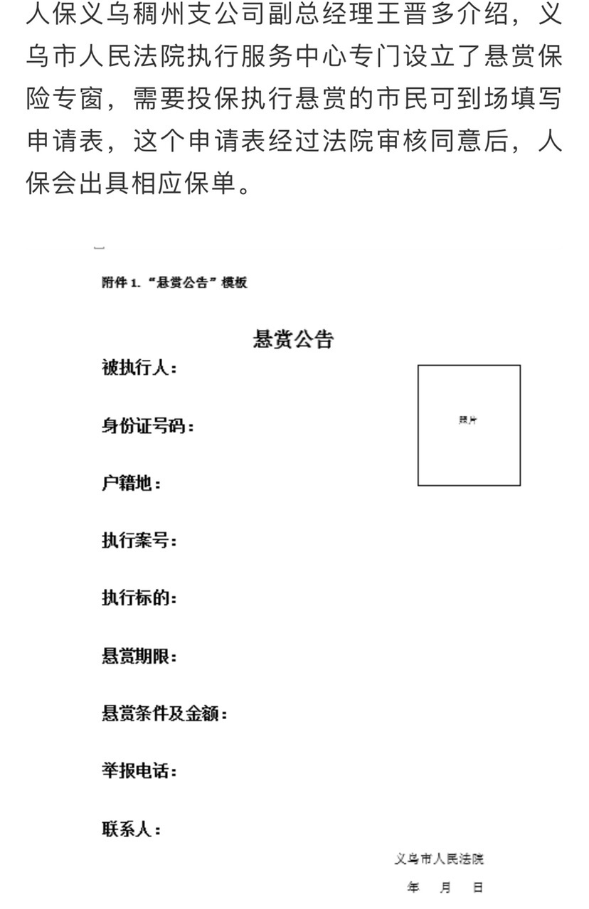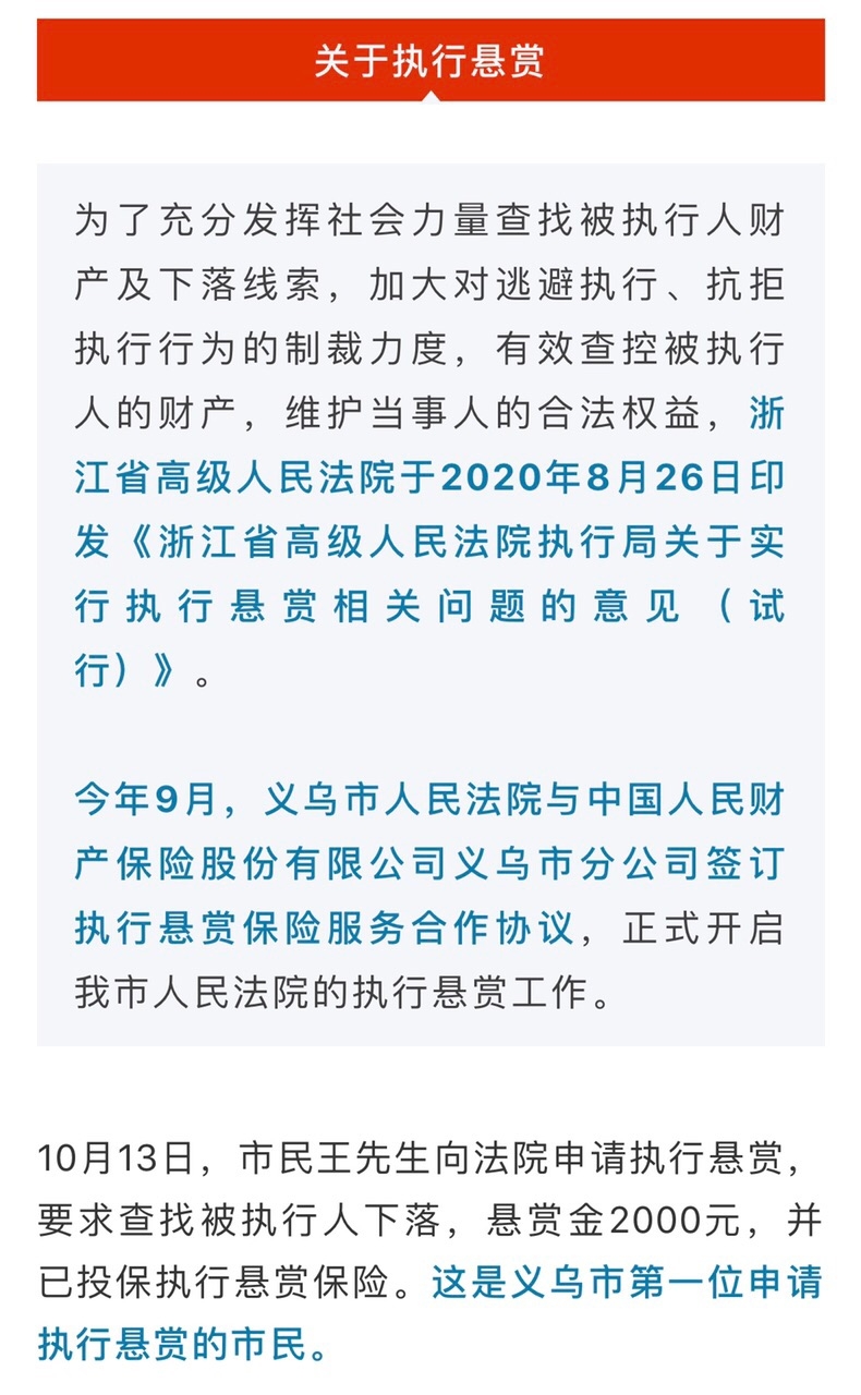 [义乌故事]义乌市人民法院开启执行悬赏工作,最高20万元! [复制链接]