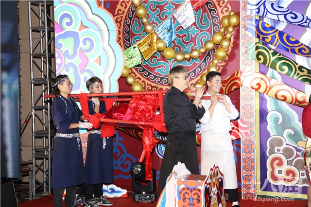 此次周年庆,酒店大宴会厅内以草原风为主题,现场推出了极富创意灵感的烤全羊上菜秀,以此盛情款待各位莅临的嘉宾,感受内蒙人民的热情好客和豪爽大气;佳肴配美酒,香格里拉集团新推出的爱新觉罗八旗酒也在当晚作为招待酒展献在餐桌上,大家齐聚一堂,共举八旗美酒,畅饮欢庆;酒杯未落,酒店厨师团队又在大家的欢声笑语中,推出了整条约50公斤重的金枪鱼上台,为在座的宾客表演现切金枪鱼,菜肴风格从大草原的粗犷向日系风的精细转变,每一次的出场都吸引所有人的目光,展现了酒店在餐饮上的独具创意,满足了大众的需求;最后酒店员工团队换上少数民族服饰穿梭于席间,向宾客们带来少数民族热情迎客最高礼遇的“高山流水”,同时也将周年答谢晚宴推向了高潮。