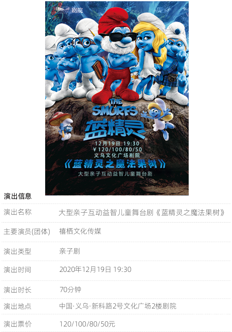 [义乌故事]大型亲子互动益智儿童舞台剧《蓝精灵之魔法果树》 [复制链接]