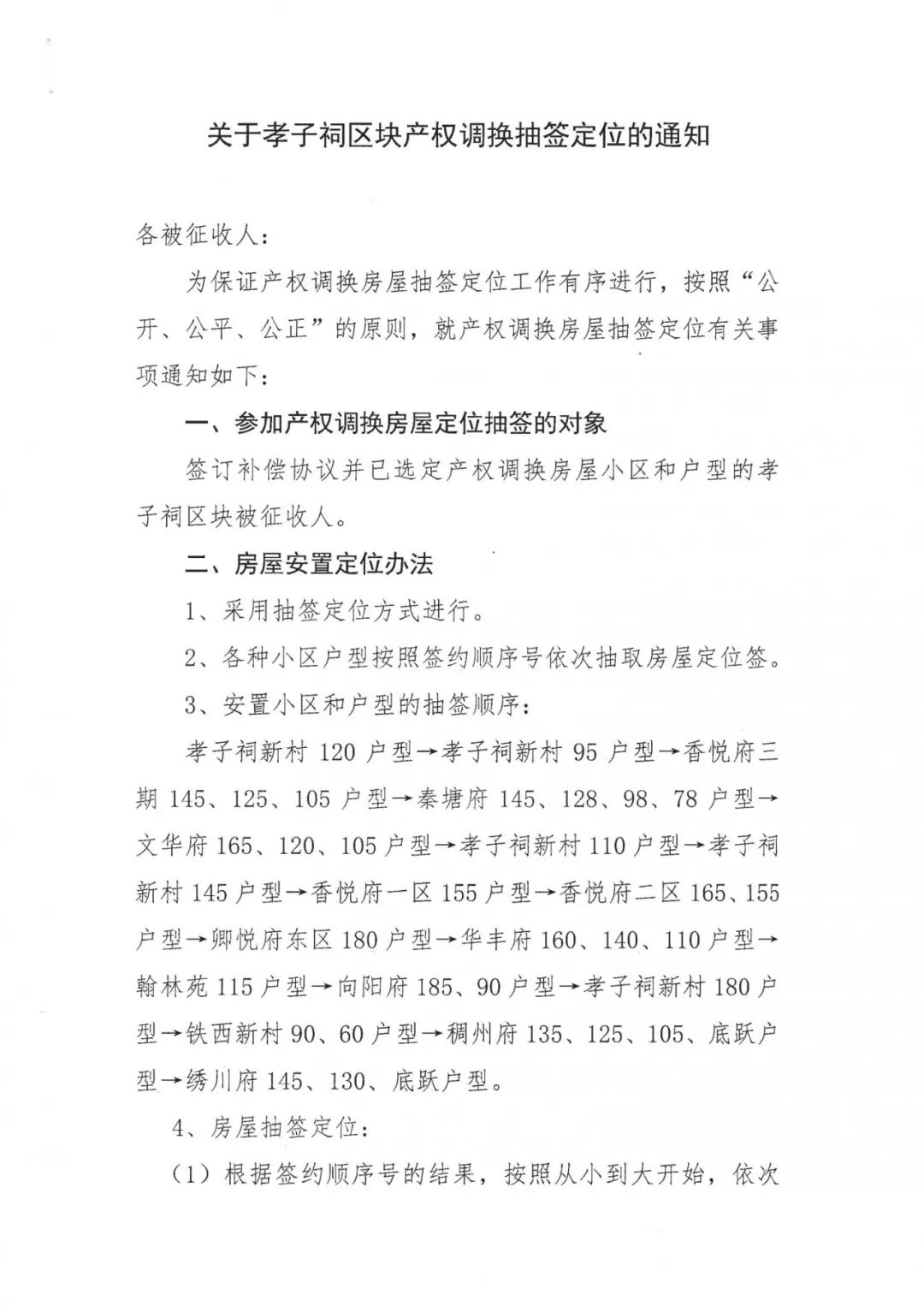 为保证产权调换房屋抽签定位工作有序进行,按照“公开、公平、公正”的原则,就产权调换房屋抽签定位有关事项通知如下: