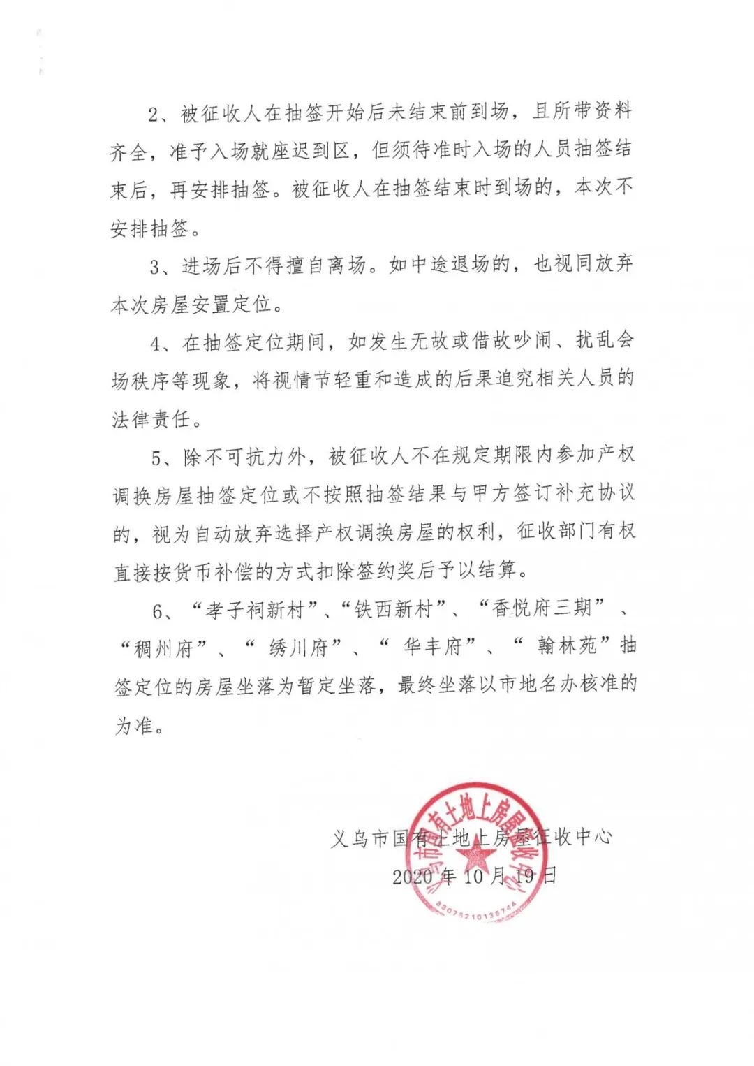 6、 “孝子祠新村”、“铁西新村”、 “香悦府三期” 、“稠州府”、“ 绣川府”、“ 华丰府”、“ 翰林苑”抽签定位的房屋坐落为暂定坐落,最终坐落以市地名办核准的为准。