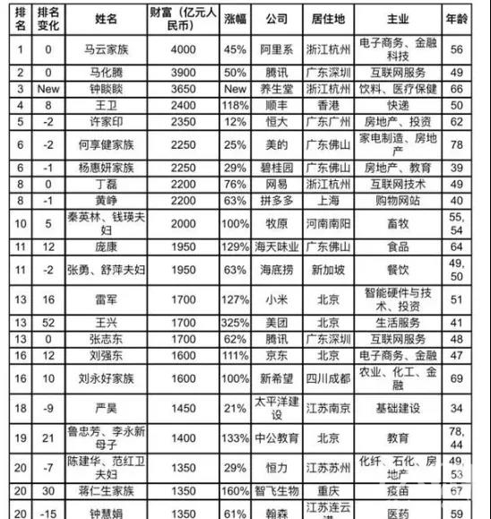 胡润研究院10月20日发布《胡润百富榜》,今年2398位企业家财富超过20亿,上榜企业家总财富比去年增加近十万亿,达到27.5万亿。千亿级企业家人数比去年骤增一倍,达41人,为历年最多。