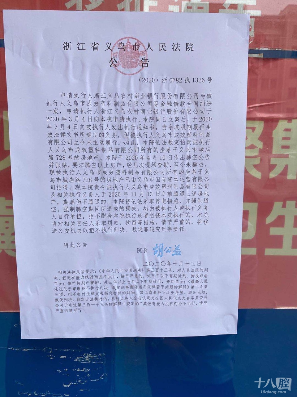 义乌城店南路728号,成效熟料制品有限公司,房东倒闭,破产,法院公告11月13日前要求腾空厂房,30家左右租户房租无处可退,社区,法院去过多次,无济于事。有没有记者朋友可以曝光下
