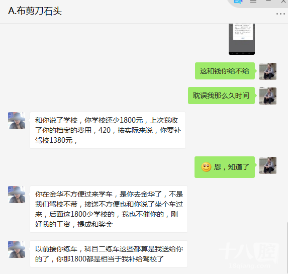 啊,还好意思说“科目二练车这些都算是我送给你的”,我转到你那边差不多大半年的时间,我来金华