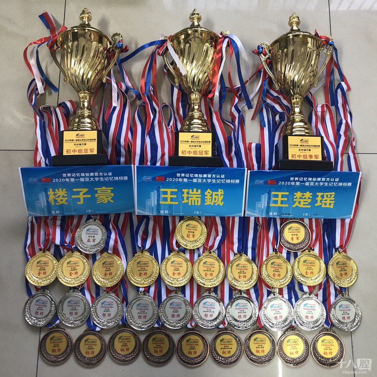 喜讯:在上周末结束的2020年第一届亚太学生记忆锦标赛杭州城市赛中,绣湖中学704班王瑞鋮、710班王楚瑶、718班楼子豪参加了“随机词语”、“二进制数字”、“随机数字”、“象形文字记忆”、“快速数字”、“虚拟事件和日期”、“随机扑克牌”、“单词淘金记”、“古诗词记忆”、“快速扑克牌”全部共10个项目的角逐,共斩获10金10银9铜,包揽初中组及全场冠亚季军!