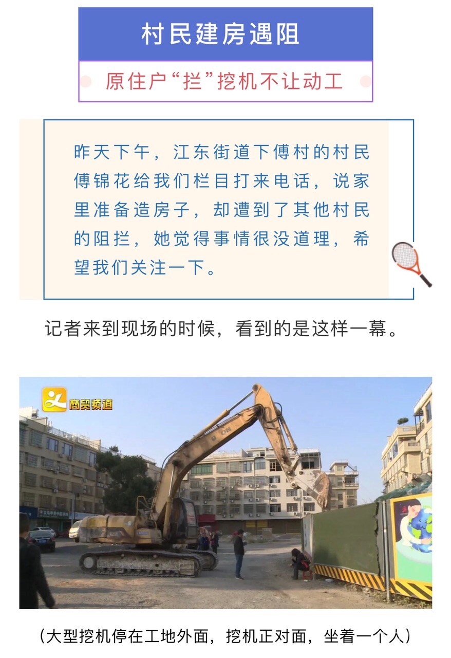 “拦”挖机!阻挠村民造新房!下傅村这位村民唱的是哪一出....