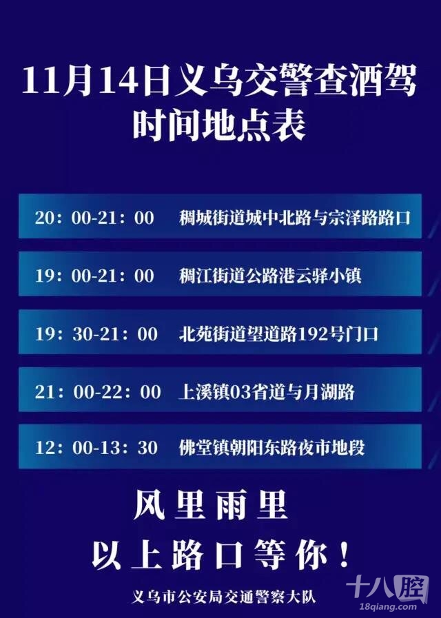[义乌故事]11月14日义乌交警查酒驾时间地点表 [复制链接]