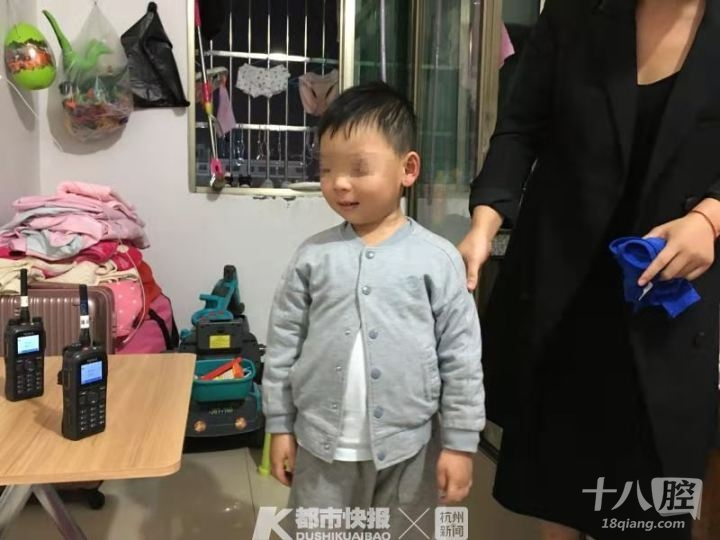 “脖子上是松的,但是头钻不出来了。”男童母亲王女士说。