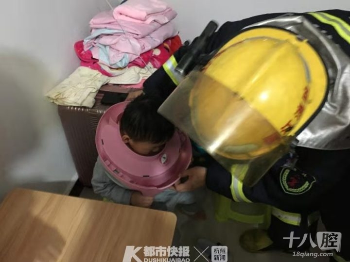 “我儿子脖子上套进去一个儿童坐便器,取不下来了!”