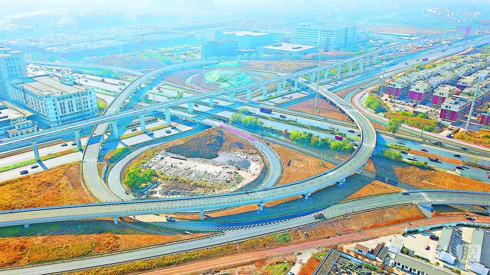 据介绍,环城南路与国贸大道互通工程投资约1.4亿元,采用对称苜蓿叶形互通式立交。其中国贸大道改造长度为1715米,环城南路改造长度为993米,互通匝道建设总长9084米。