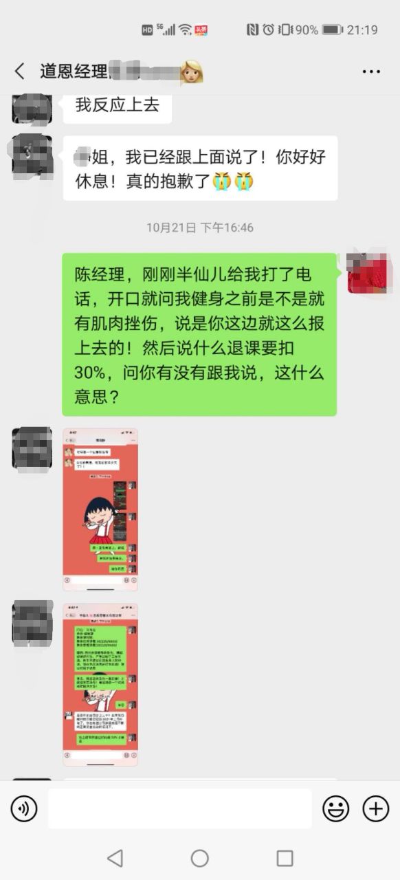 21号,专门管客诉的运营总监终于打电话来,说要走个流程,然后一开始就给我挖坑,问我是不是锻炼之前腰就有伤,我腰本来就有伤的话还能去上常规课练腿?后面就是一连串的机器人式的问话,完了说七天给答复。