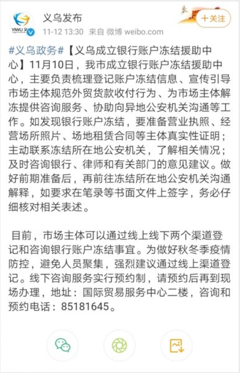 义乌多家外贸商家账户涉电信诈骗遭异地冻结,官方成立援助中心