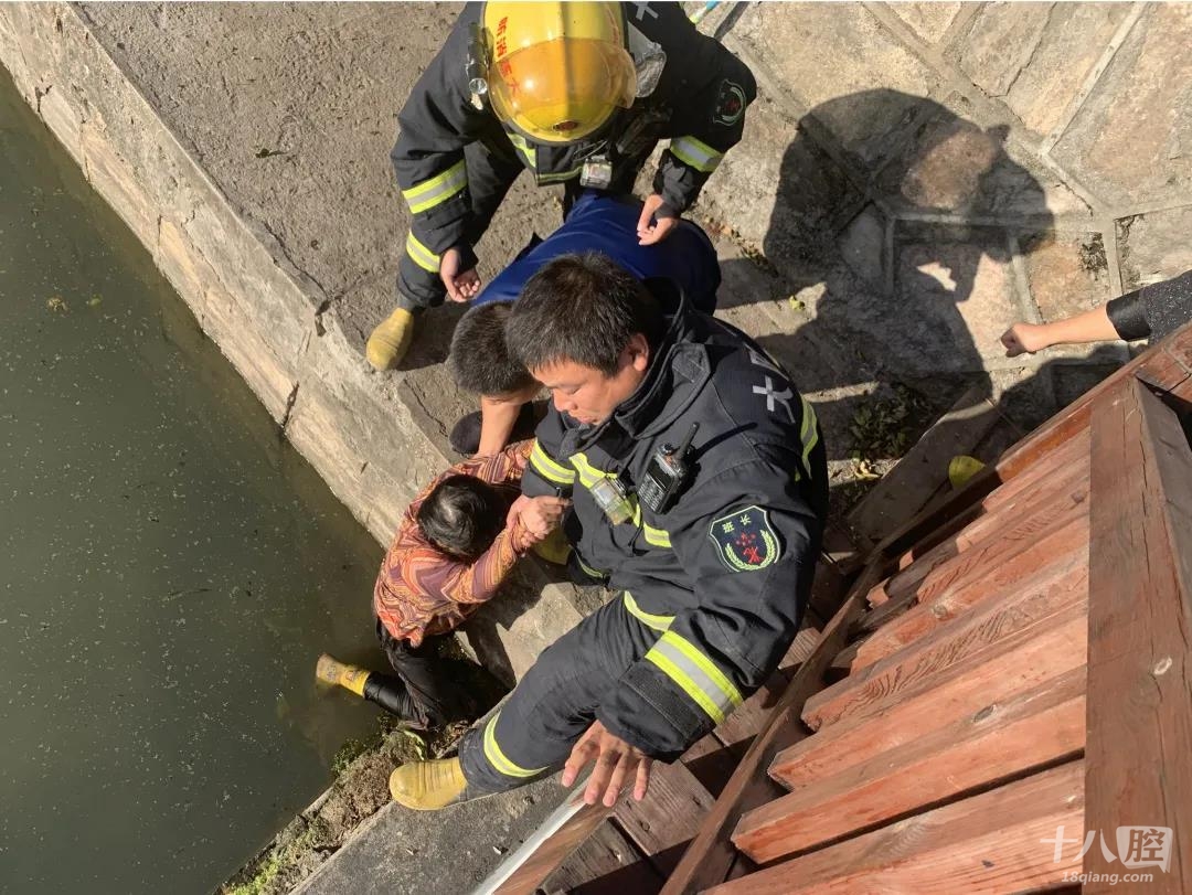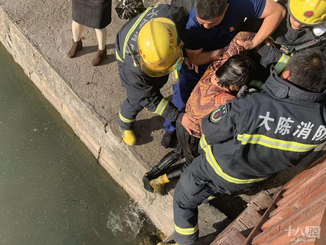 “有个老奶奶落水了,现在还在水里挣扎。”下午3时14分,义乌市消防救援支队119指挥中心接到报警电话后,立即调派大陈镇专职消防队前往营救。