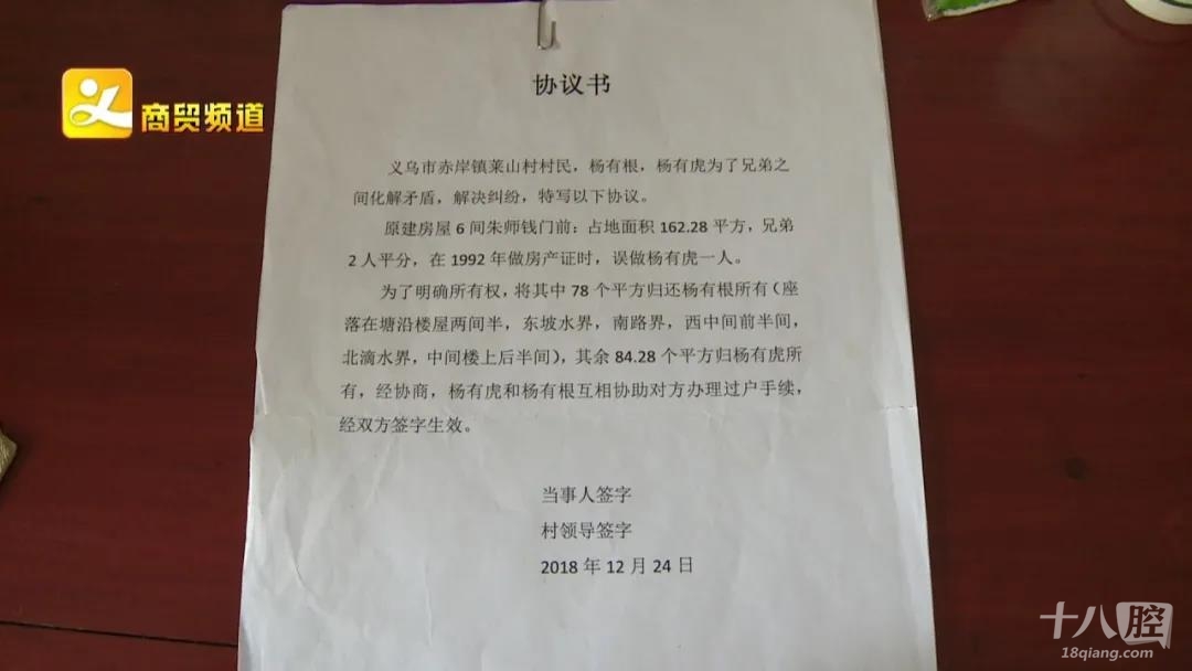 杨有虎:证是爸妈做的,不是我做的。我的一间小房子都是做在爸爸名下。协议我不是不肯签,开门见山讲过了,属于我的房子弄清楚了再来签。