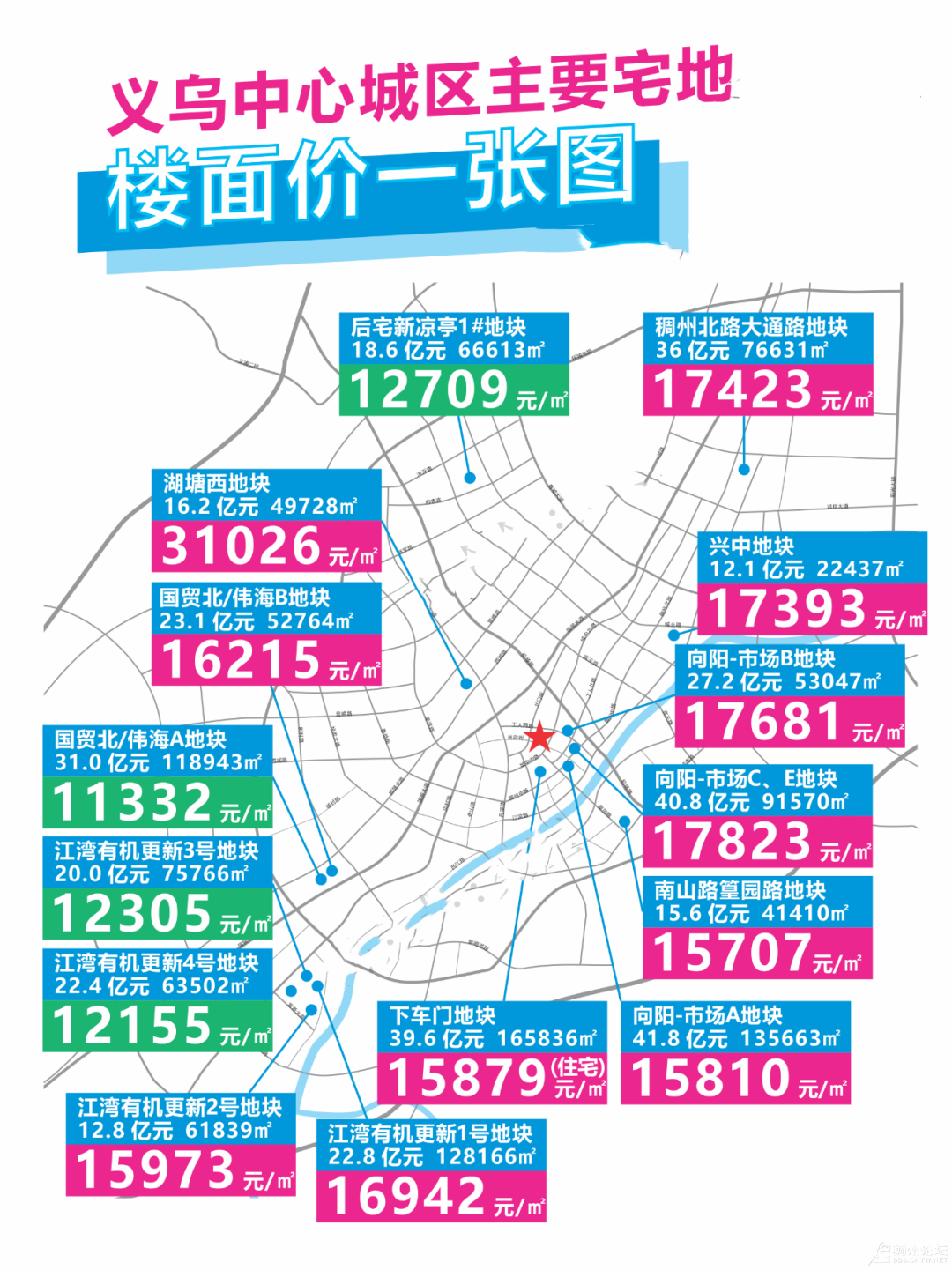 2020年9月7日,稠州北路与大通路交叉口西南侧地块以36亿元成交,出让面积76631㎡,规划容积率2.5-2.7,成交楼面价约17423元/㎡。