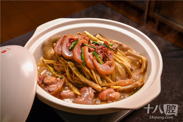 火腿滴油炖豆腐 挑选上乘的盐卤豆腐,与火腿的滴油老火慢炖,不仅可有效去除豆腥味,还令豆腐愈发滑嫩,在充分吸收火腿的油脂和醇香后,再辅以少许冬笋片、辣椒等食材,越炖越入味。