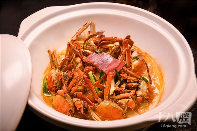 火踵笋干老鸭煲 作为江南名菜,火踵笋干老鸭煲品尝的是火腿浓香与老鸭的油嫩慢炖出来的的鲜汤美味。鸭肉性凉、味甘,火腿性温、味咸,将两者放置于砂锅内用微火焖炖,使食材释放大量的蛋白质与氨基酸。上桌揭盖后汤汁沸滚、温香扑鼻,乳白色的汁水包裹酥软的鸭肉,形美、味鲜,让人食欲大振。 上方火腿蒸甲鱼 选用火腿的上方切成薄片,与上等筵席的优质材料甲鱼一起慢火蒸制,令火腿的醇旨和甲鱼的鲜美充分融合,汤厚胶浓、肉质酥嫩、裙边滑润、营养价值丰富,成就了口感细腻、食材相得益彰的滋补体验。 金银双蹄鲜中鲜 金银蹄选用味香、色浓的火踵和新鲜的猪后肘炖制而成。因双蹄同炖,颜色上正好就凑成了金银双色,金银蹄的名字由此而来。火腿搭配猪蹄膀,再加入应季的冬笋,口感鲜咸、酥烂、肥而不腻,爪皮上的胶原蛋白充足,是冬季养生美馔。 中方湖蟹一锅鲜 选用火腿的中方切片,少油煸香,再放入砂锅内与太湖蟹慢炖,脂香四溢的蟹黄与火腿的咸鲜相互浸润,在锁住蟹肉原汁原味的基础上,令蟹肉的香气得以充分激发与调动,展现出独特的浓郁甘甜,成为一道创新而又不失湖鲜本味的蟹膳佳品。
