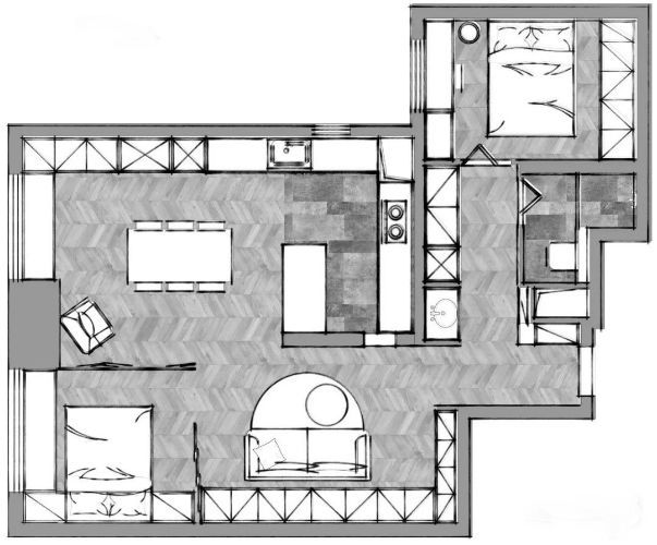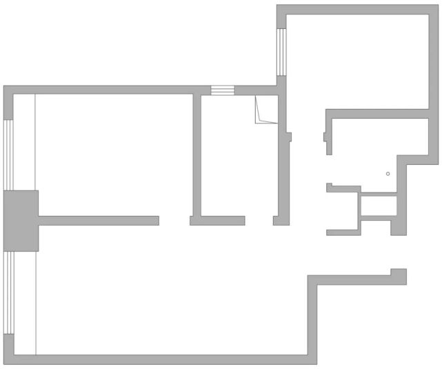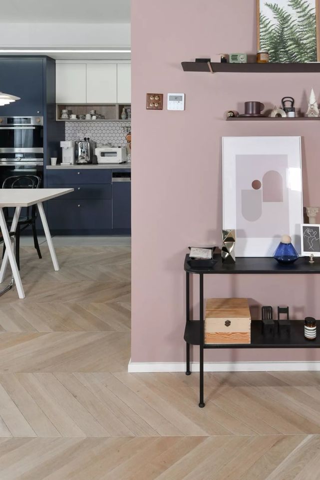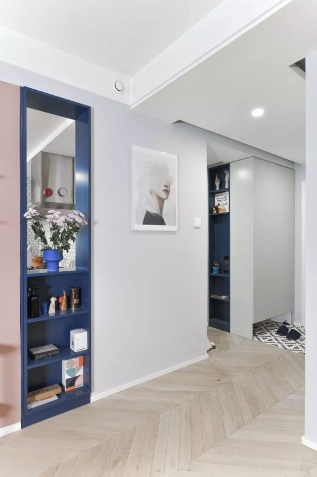 厨房和客厅的隔断墙上设计了两个壁龛,
