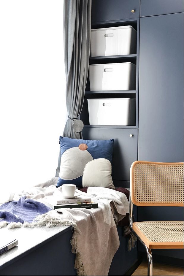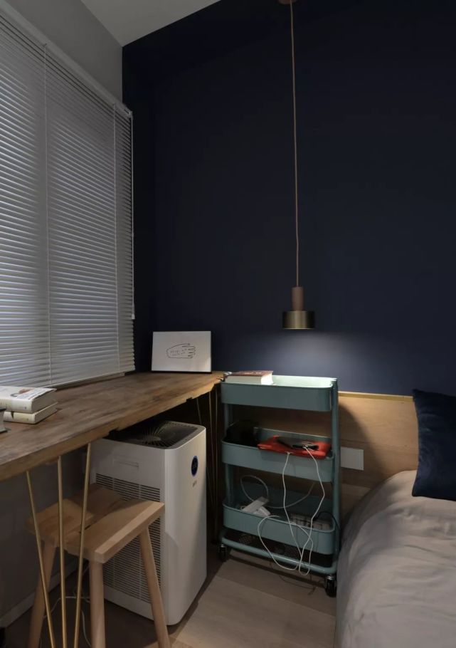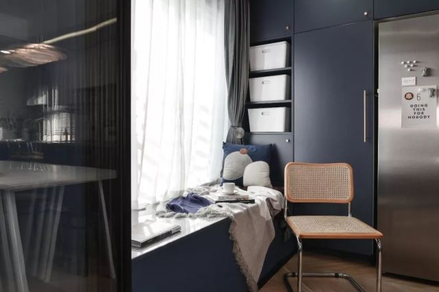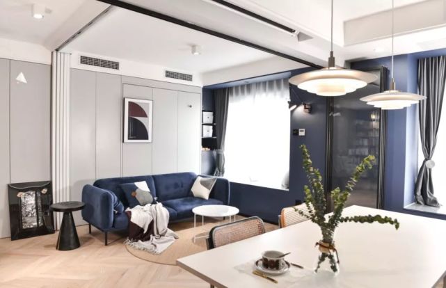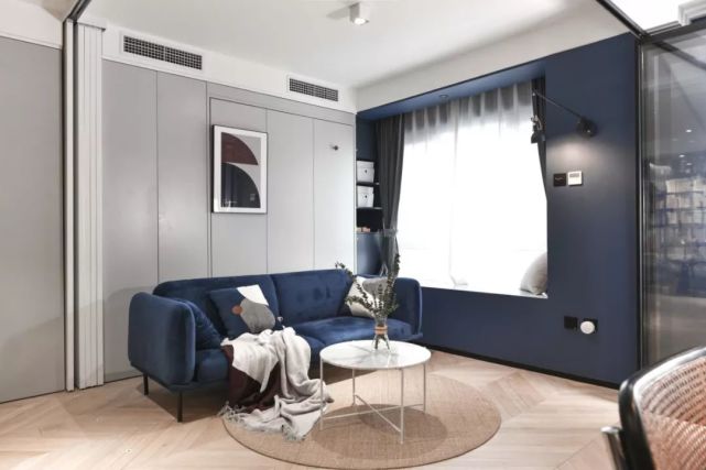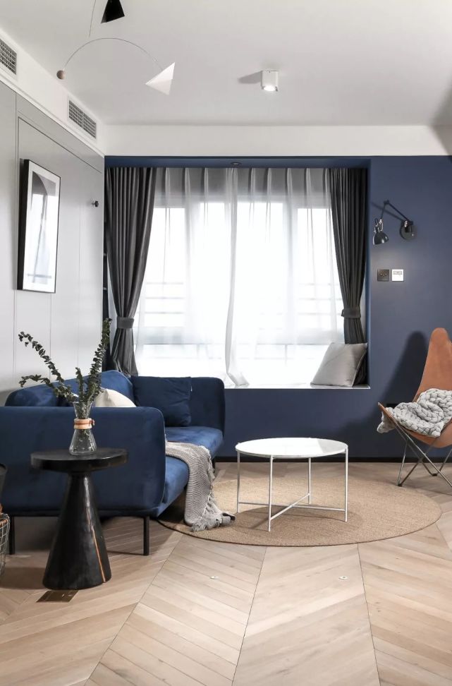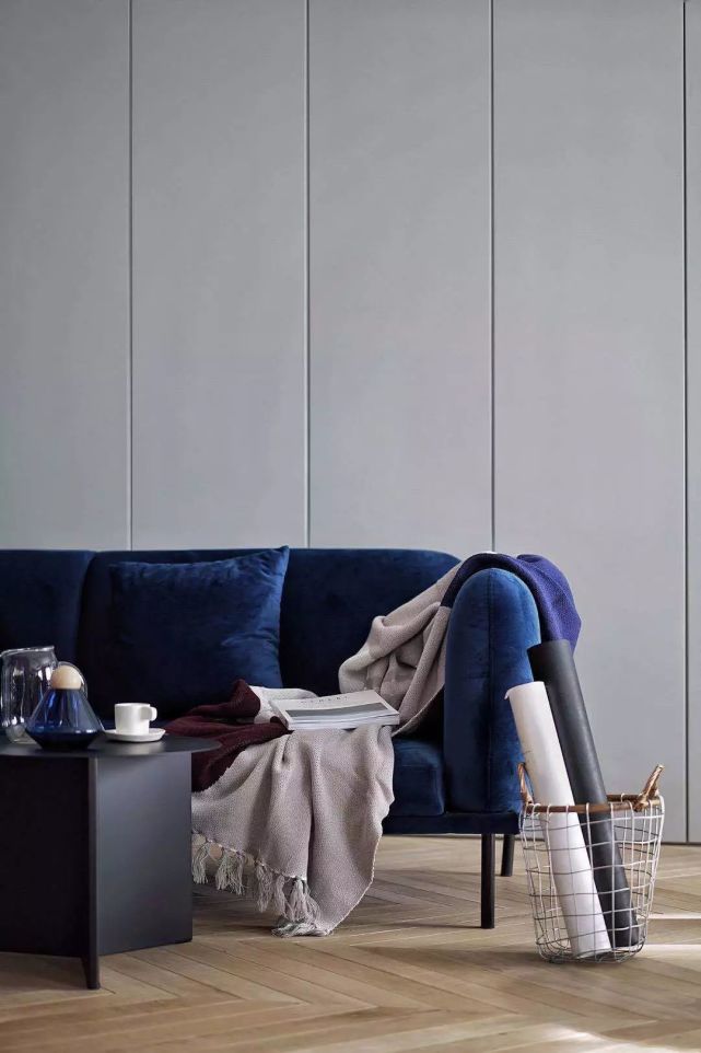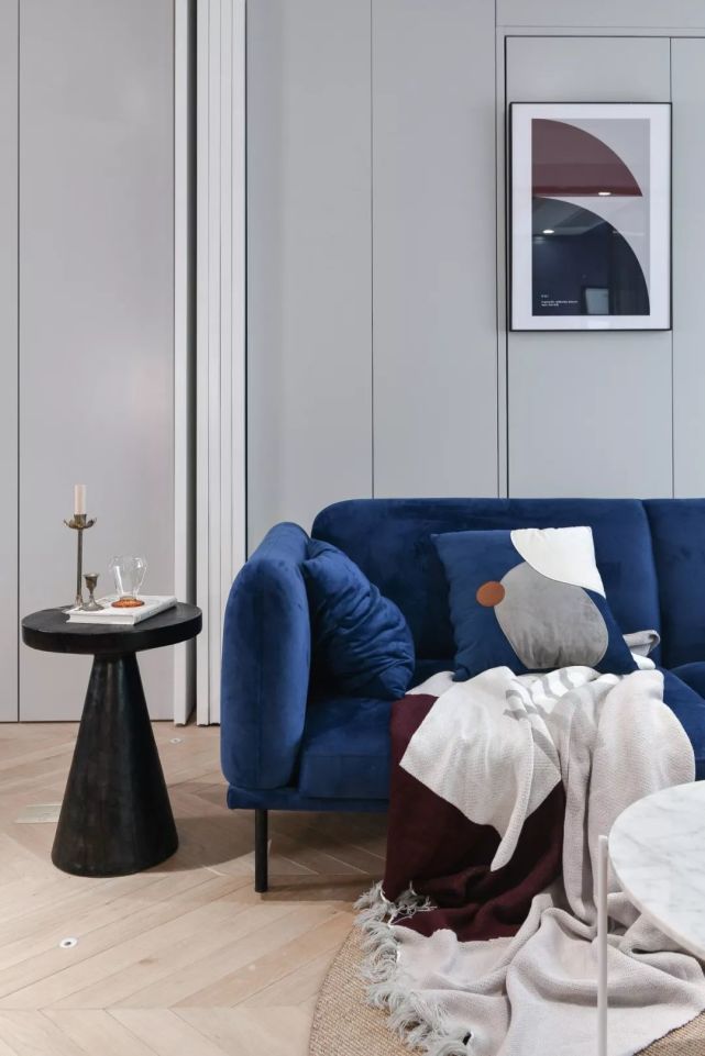 与家里的风格相呼应的深蓝色天鹅绒沙发,精致优雅。