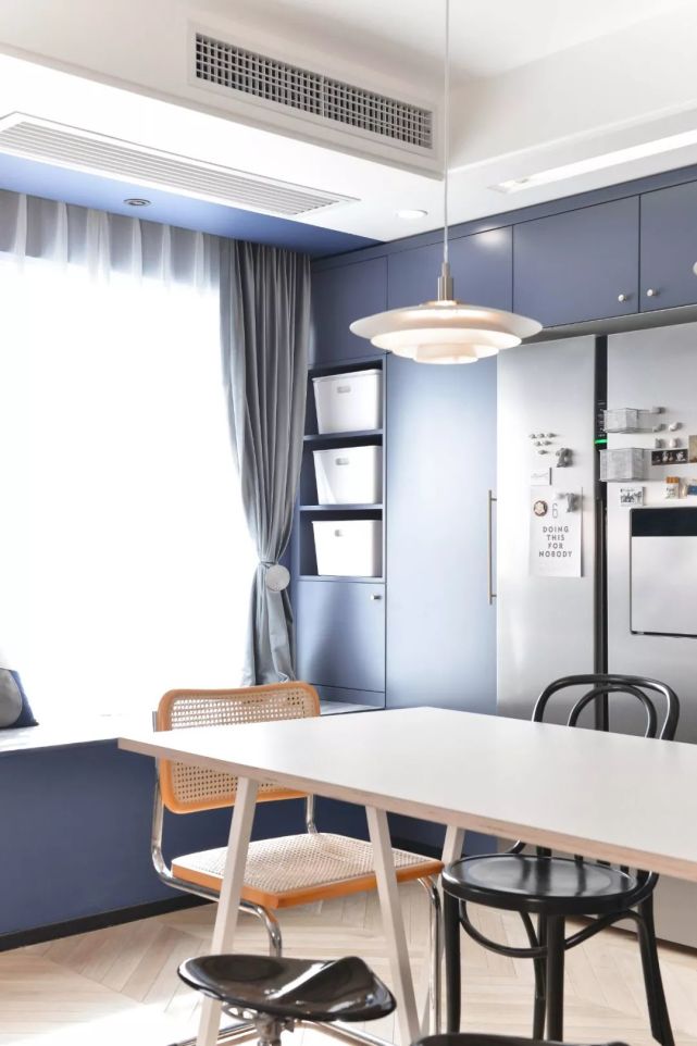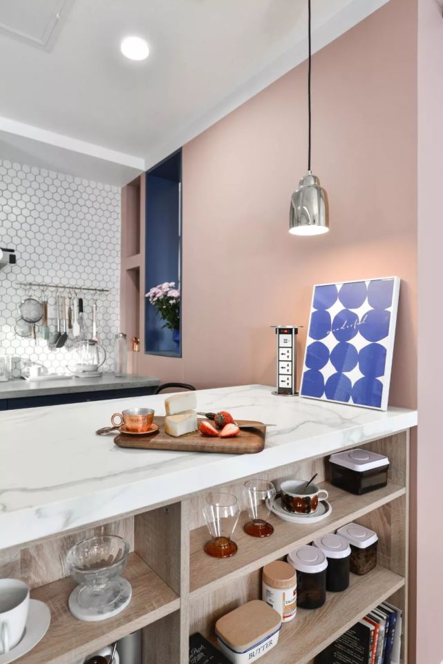 靠近餐厅一侧的柜体做了开放式的展示柜,