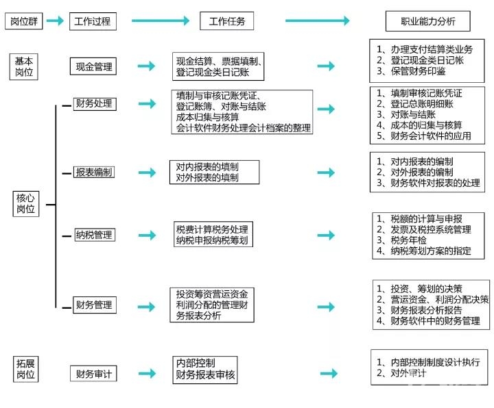 会计新手需要了解的会计各类岗位工作流程及职业能力如下图所示: