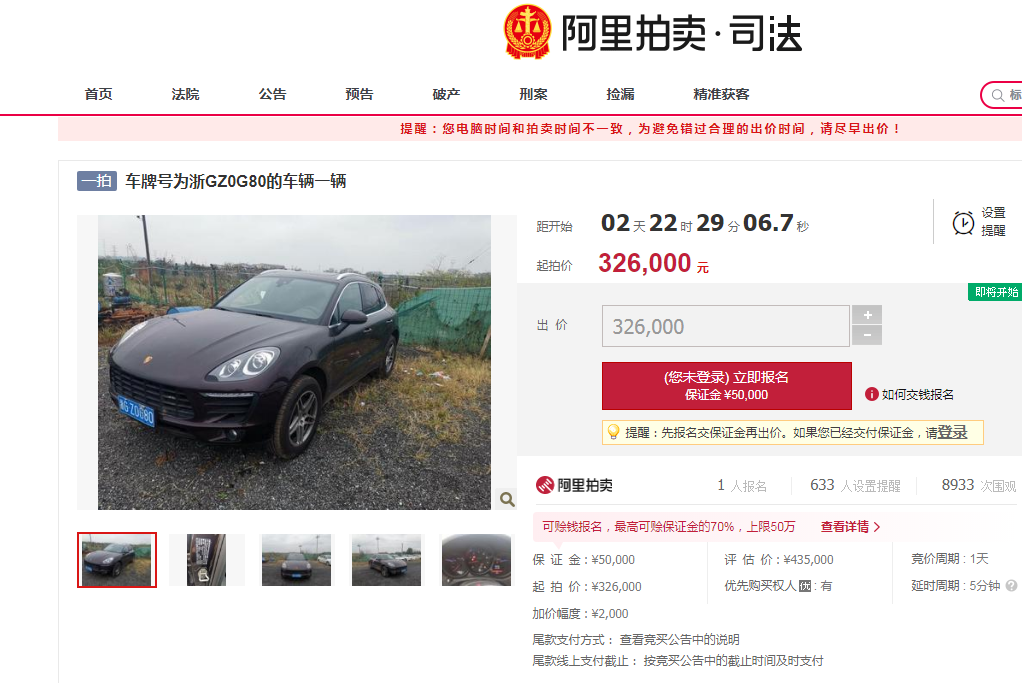 另一辆浙G保时捷拍卖,起拍价326000元!