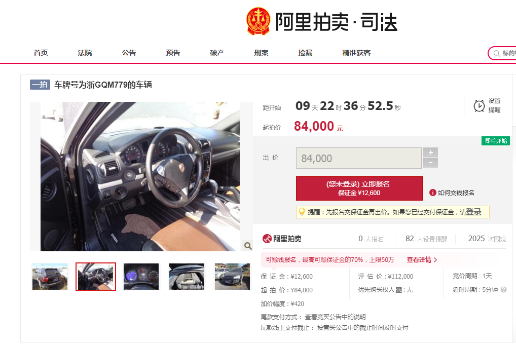 拍卖网上看到的,保时捷卡宴起拍价84000元!