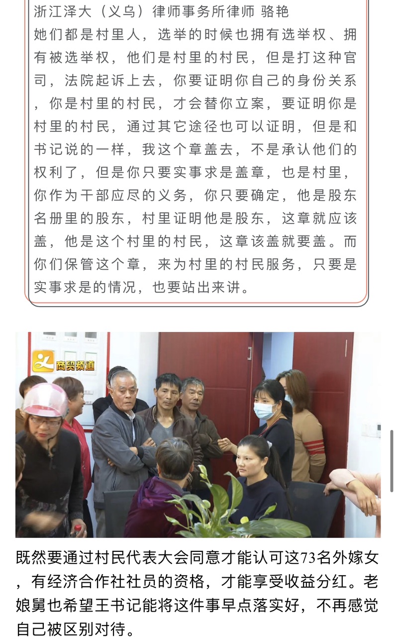 [义乌故事]当年不让迁户口,如今又无法享受权益?义乌这个村73位外嫁女讨说法,结果..... [复制链接]