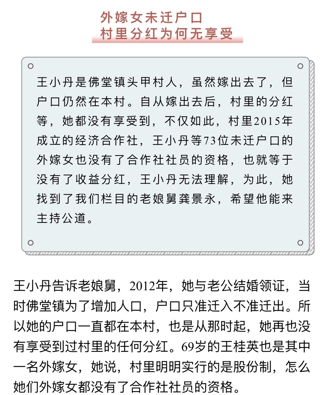 当年不让迁户口,如今又无法享受权益?义乌这个村73位外嫁女讨说法,结果.....