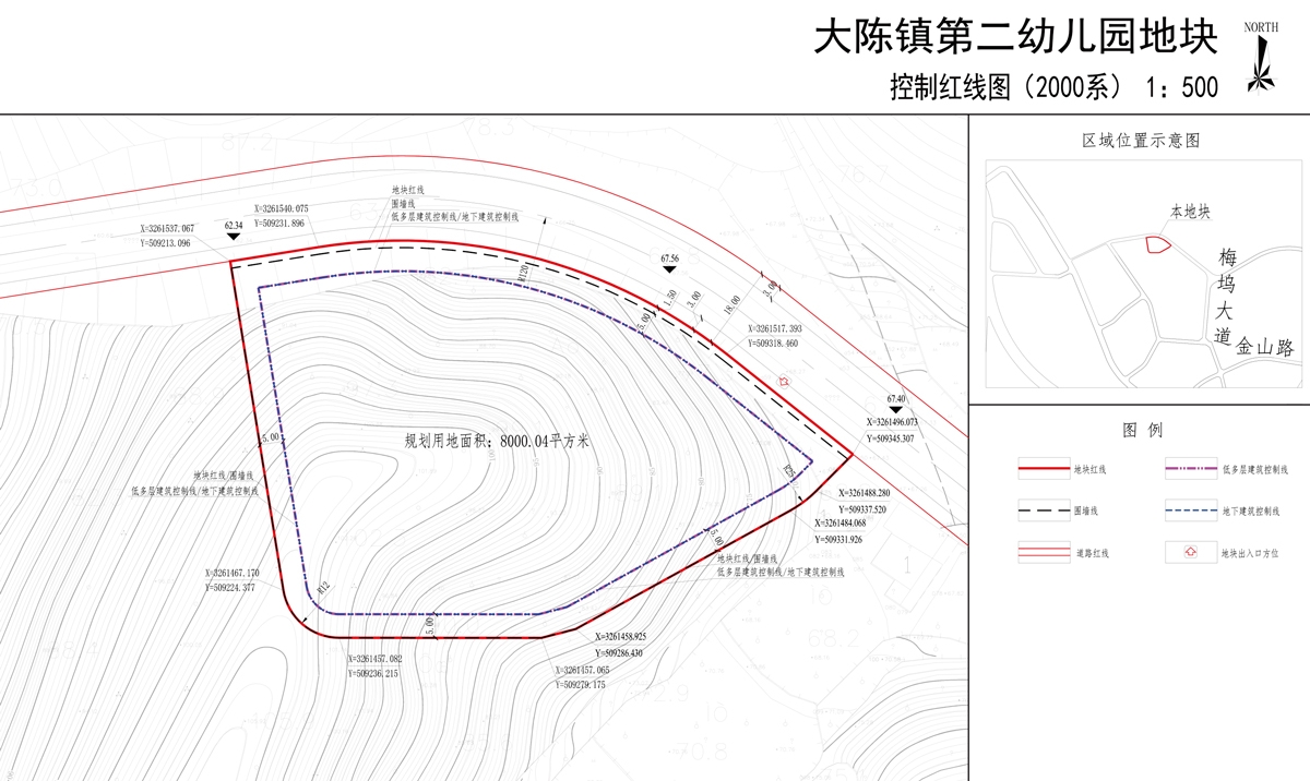地块选址于梅坞大道南侧,规划用地面积8000.04平方米(约12亩),规划用地性质教育科研用地,建筑控制高度24米,建筑密度20%-35%,容积率0.6-1.1,绿地率25%。