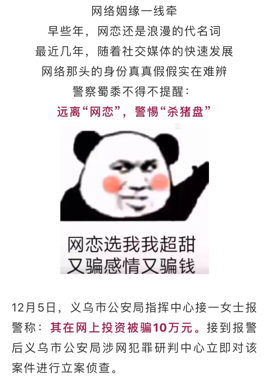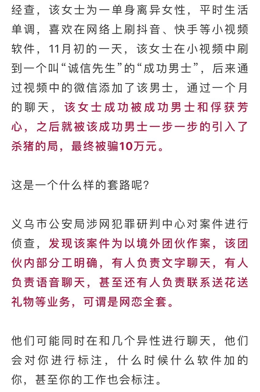 [义乌故事]义乌一女子“网恋”被骗10万元,公安揭秘背后套路 [复制链接]
