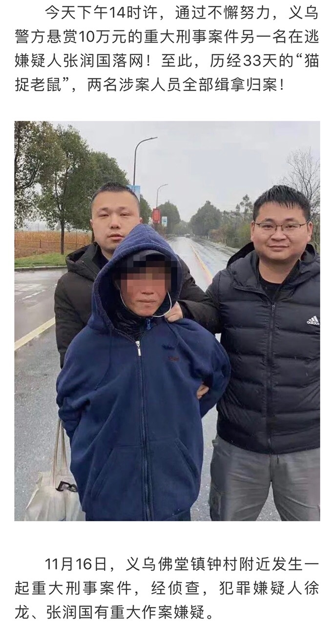 [义乌故事]全部落网!义乌警方悬赏10万元的重大刑事案件另一名在逃嫌疑人落网! [复制链接]