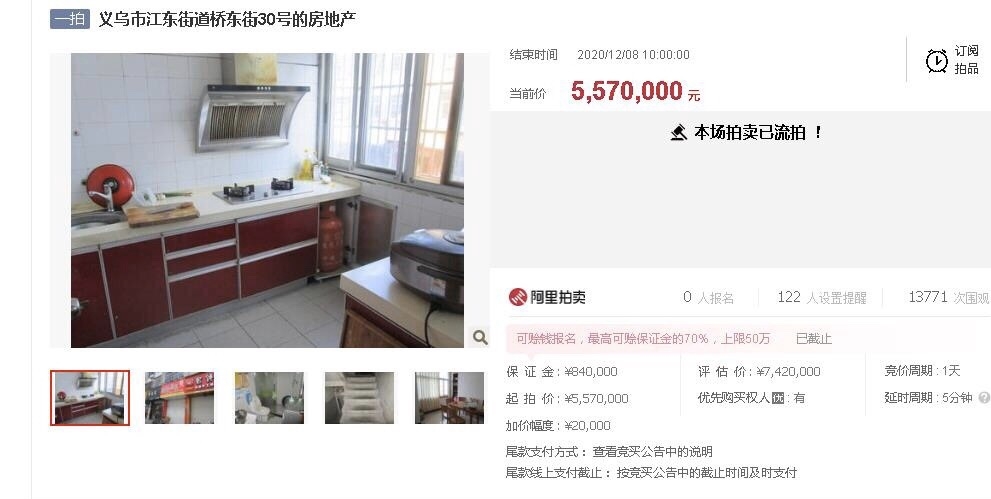1.拍卖对象:系位于义乌市江东镇桥东街30号的住宅房地产,混合结构,约建于1995年,证载总层四层(实际为五层,第五层系自行搭建的无证建筑),确权面积400.19平方米,无证面积约83.24平方米,南北朝向,室内简单装修。土地证尚未分割确权,原登记在义乌市江东镇桥东居民委员会名下的义乌国用(2000)字第1-11366号《国有土地使用证》上,使用权类型为划拨,其中XXX户占地面积83.99平方米,用途为住宅用地。房屋登记时间:2001年1月17日。