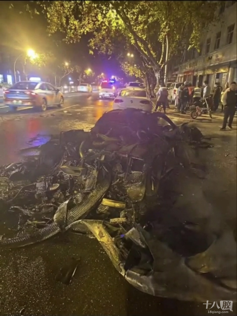 工人西路,一千多万迈凯轮自燃,烧成黑炭,知情人士说车还是租的