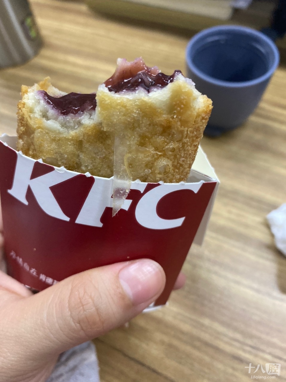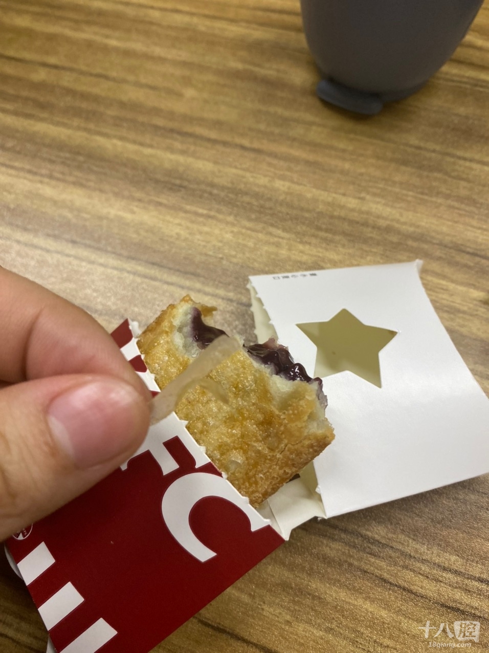 昨晚加班,想吃KFC,点了个外卖,把最喜欢吃的红豆派留在了最后吃,吃了一半,惊现不明物体,大家看看是什么