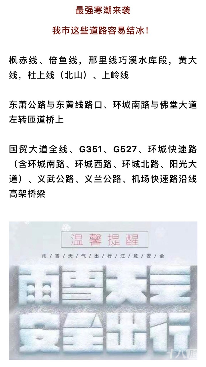 [义乌故事]最强寒潮来袭,我市以下路段易结冰,请驾驶人注意出行安全! [复制链接]