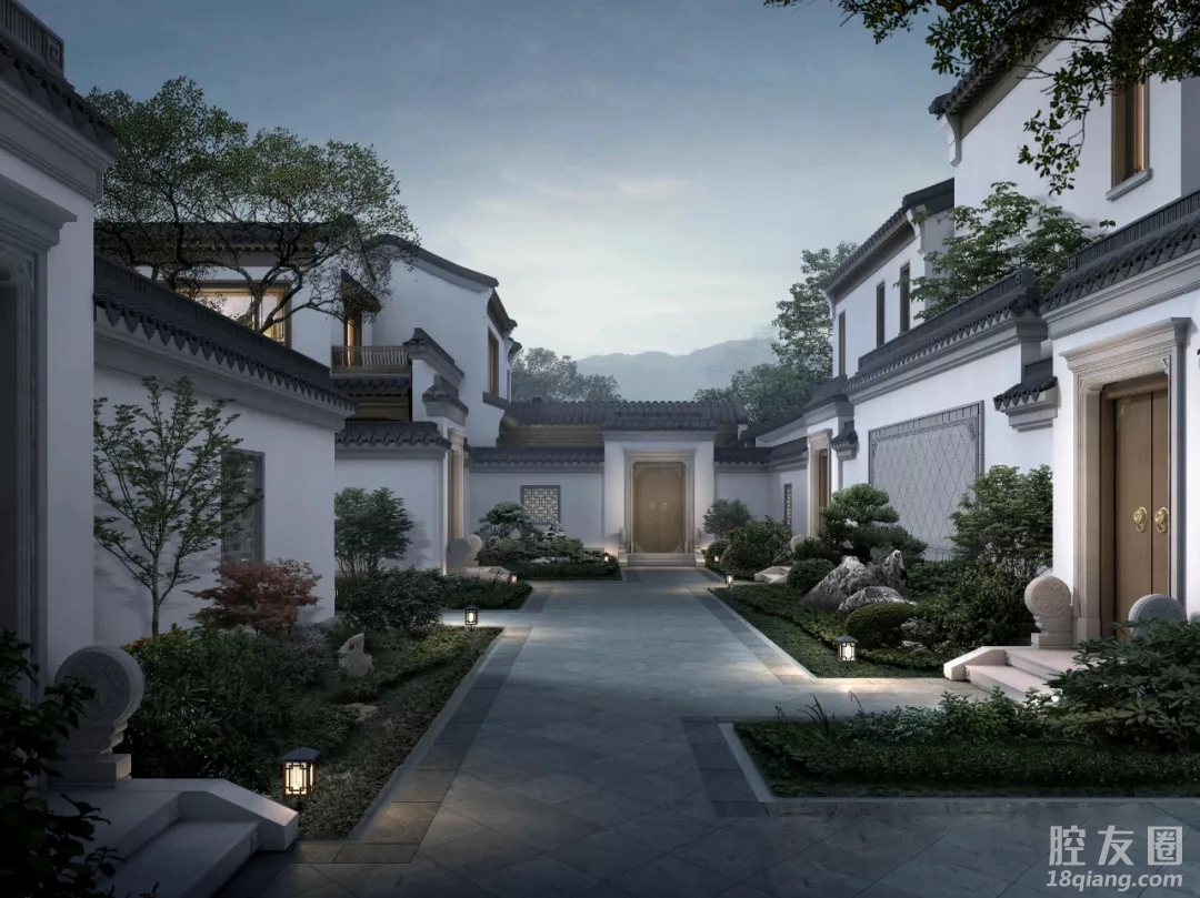 合院建筑共有5种户型,均呈仿古合院形式,建筑面积为230.69平方米到344.87平方米不等。