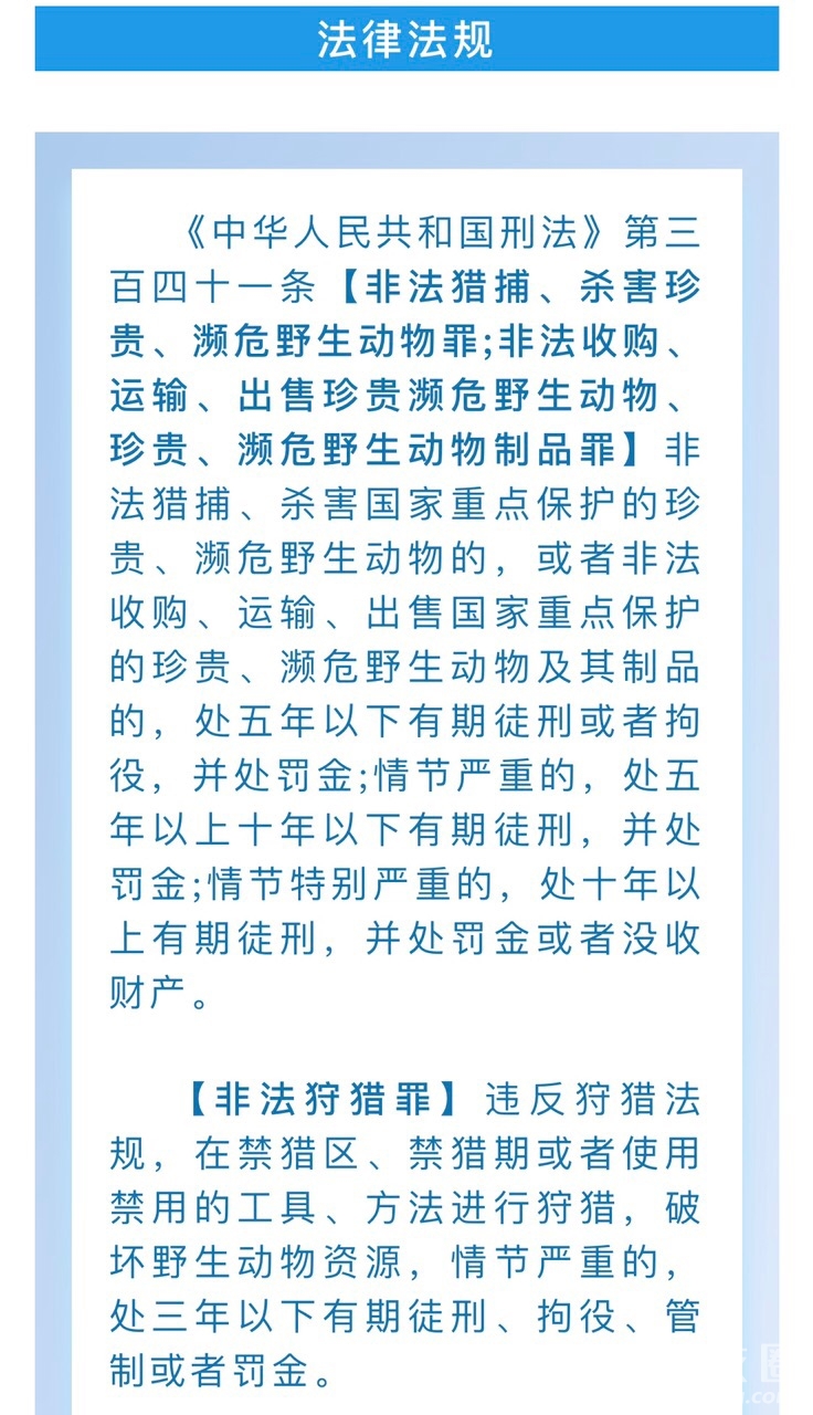 保护野生动物资源,对于维护生态平衡、保持生物多样性、改善自然环境、促进人与自然和谐发展具有重要意义。可偏偏有这么一些人置若寡闻,顶风作案最终自食其果。