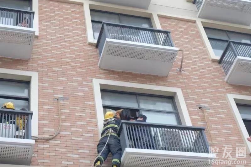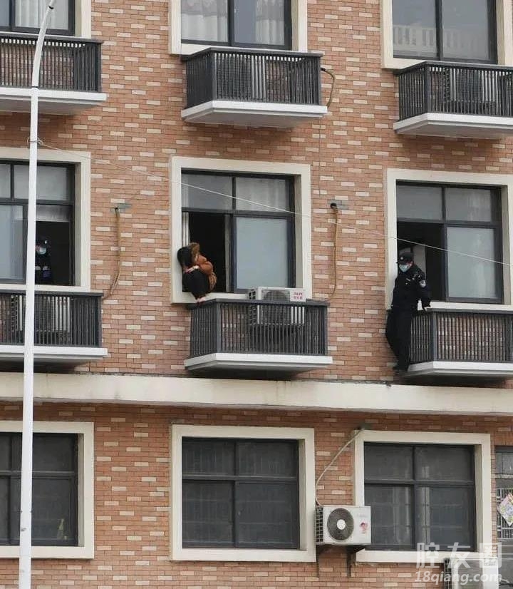 一会儿之后,女孩许是被冷风吹得受不了,她转过身来,背靠窗沿,面朝民警王加成。消防员瞅准时机,马上从隔壁另一间房翻出墙外。