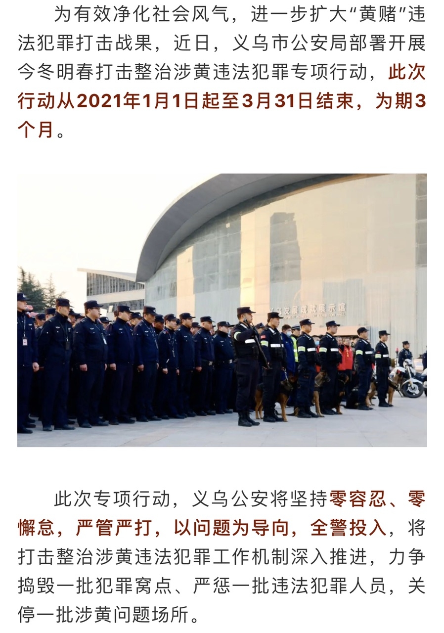 [义乌故事]重拳出击!义乌警方高压严打涉黄违法犯罪... [复制链接]