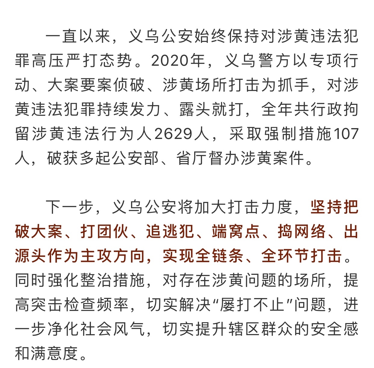 重拳出击!义乌警方高压严打涉黄违法犯罪...