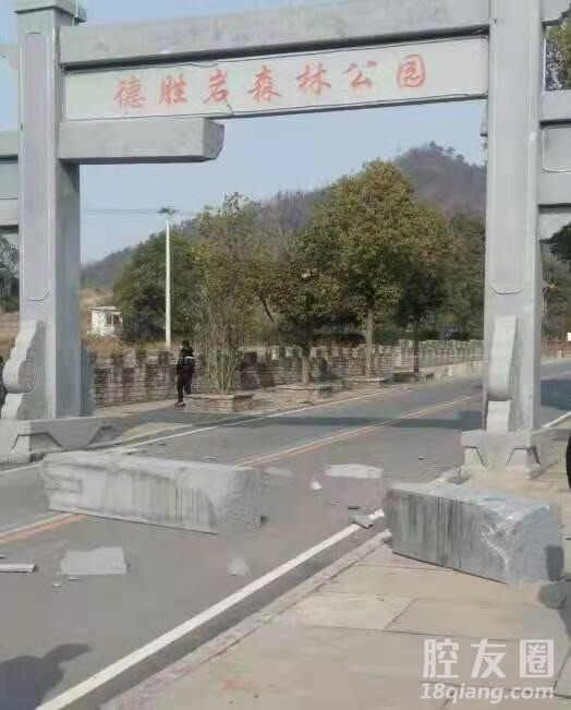 德胜岩森林公园牌坊裂了,也不清楚是被撞倒的,还是自然风化裂了