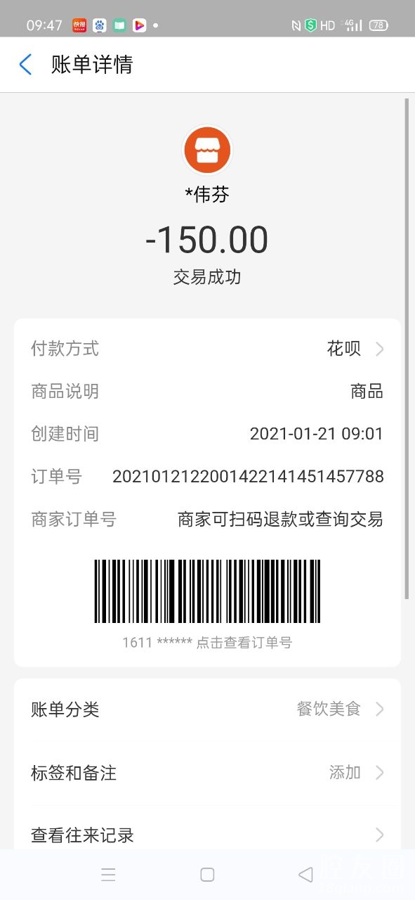 今天是2021年1月21日,我在佛堂镇建设西路早餐点用花呗换了现金2次Ⅹ150元/次=300元钱,归还给父亲的同事王某某。在此万分的感谢!