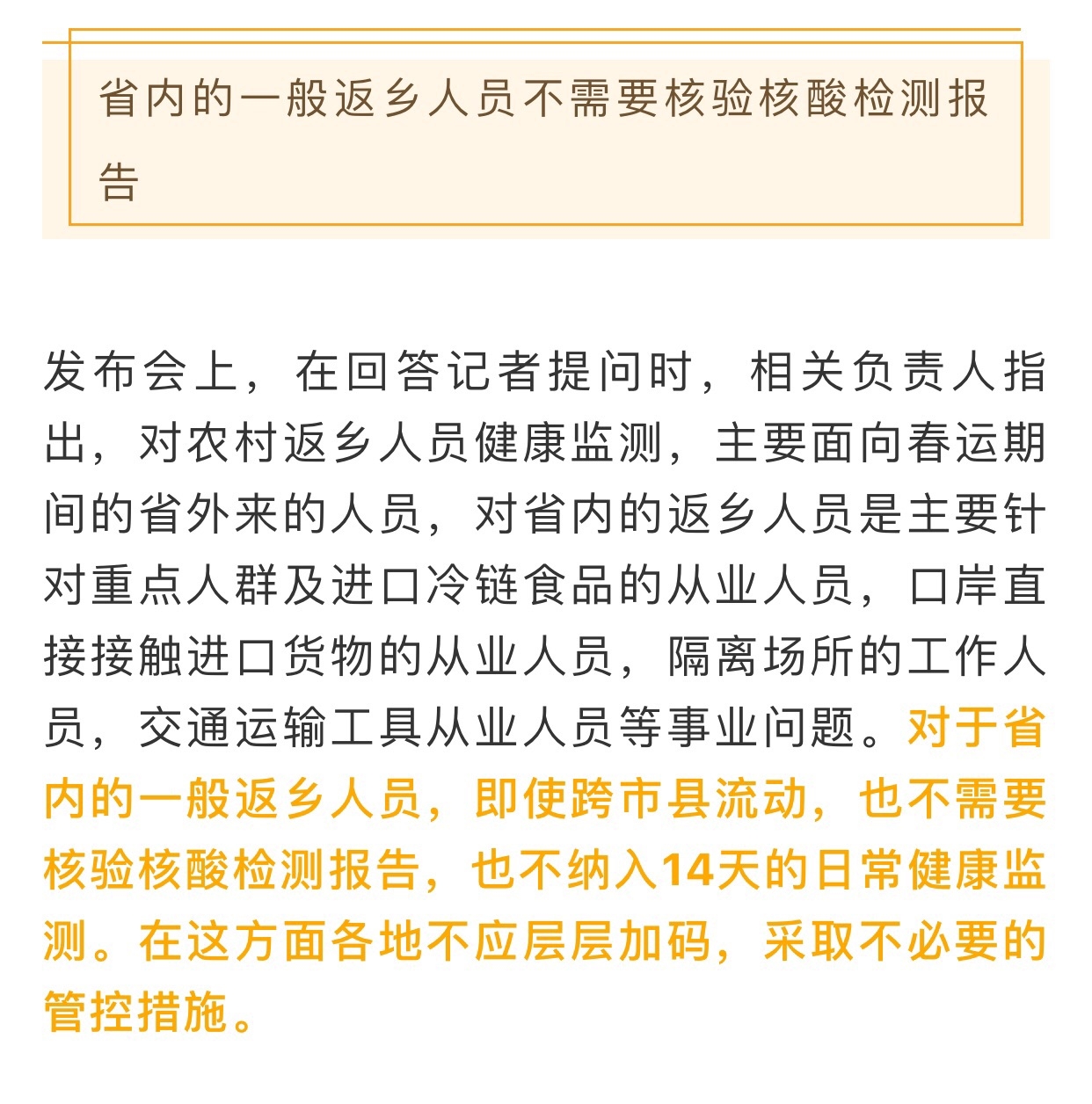 [义乌故事]明确了!浙江省内的一般返乡人员不需要核验核酸检测报告 [复制链接]