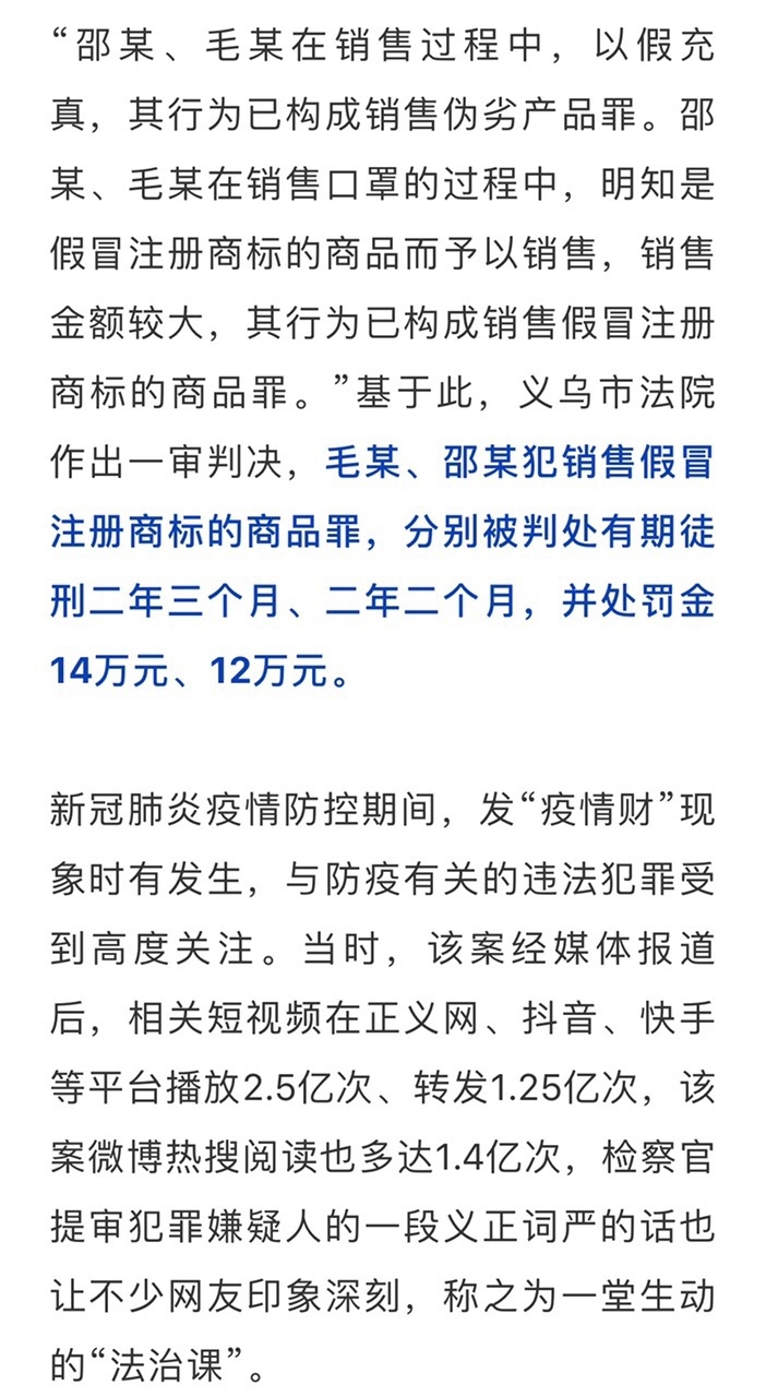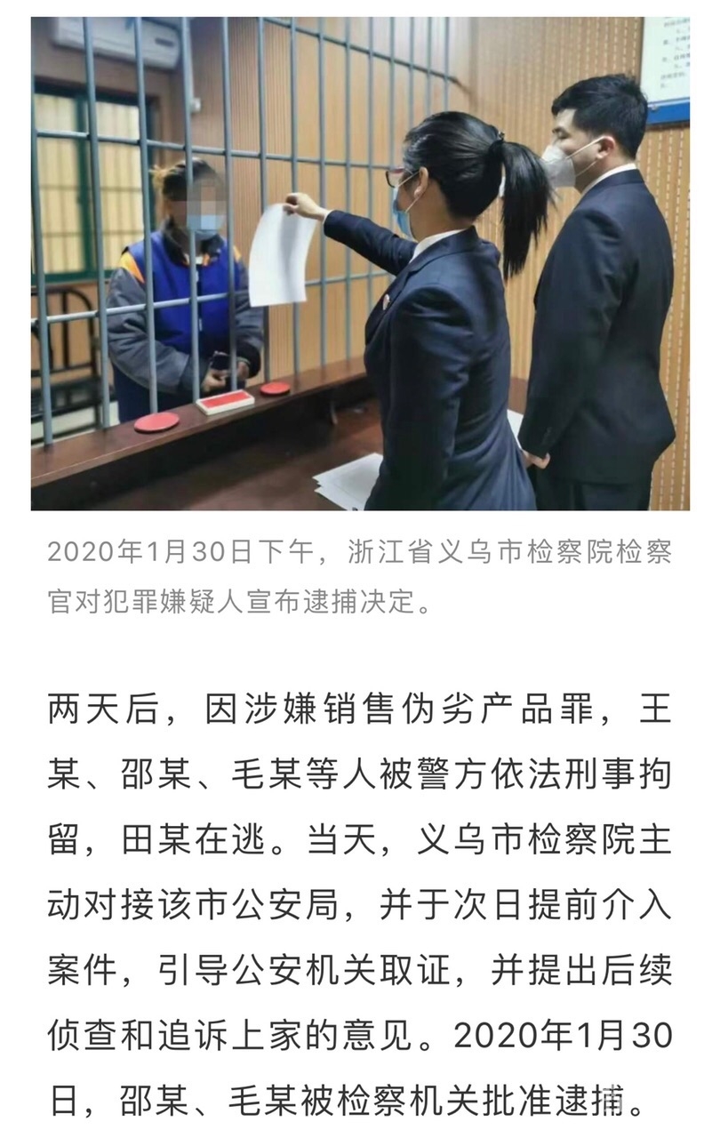 [义乌故事]全国首例防疫期间涉“问题口罩”批捕案件,义乌2人被判处有期徒刑! [复制链接]