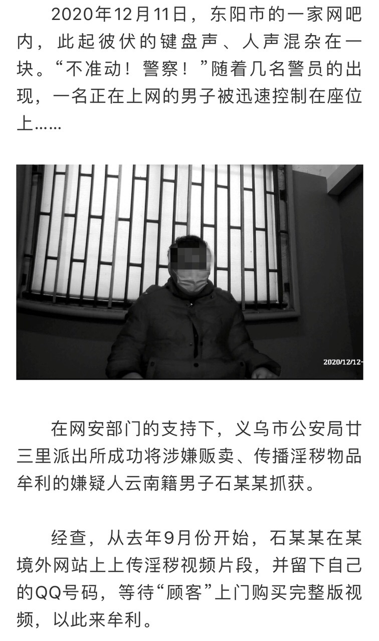 [义乌故事]传播、出售淫秽视频!义乌一男子被刑拘… [复制链接]