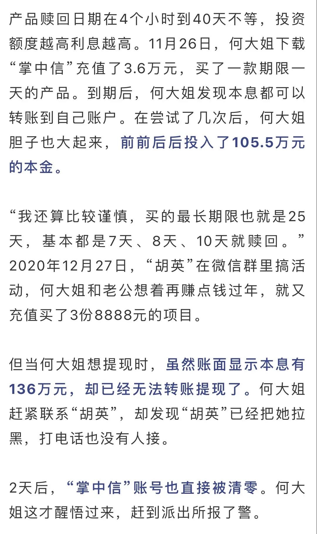 称其“投资理财”被人骗了100多万元