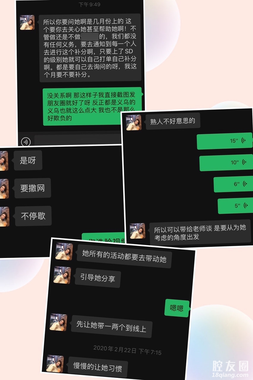 充的那一个级别要有30个人,如果下面没有30个人,就要自己充钱,在没有升到SD这个级别前,她们会每天跟我聊天,让我带人去工作室,我说跟熟人不好意思说,他们说不用我去成交,老师会帮我的,一开始我来的朋友挺多,而且都成交了,都不需要我说啥,然后那时候的奖金他们是直接打给我的,这个月成交的人下个月就会及时给我,让我觉得其实很简单,也觉得她们靠谱,会经常跟我说升级别的好处,说可以拿多少多少的钱给我画大饼,跟我说她们的自我定位,是怎么在这里赚钱还钱,以前有多不容易,会有好几个案例,就是每天都会给我洗脑,然后不停的上课,给我做升级别的计划表