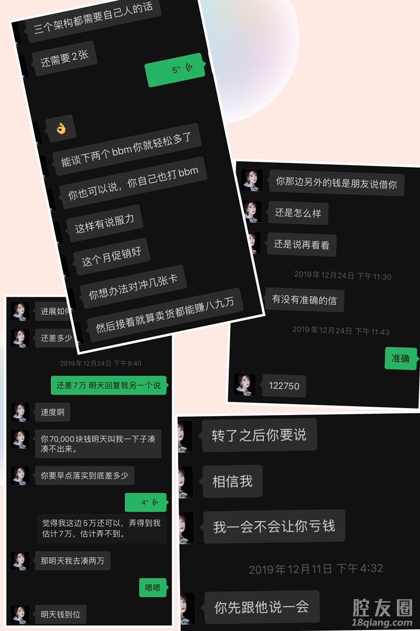后面我被成功洗脑,然后我的上级杨**和余**在那个月会催我让我凑钱 ,告诉我如果那个月不上的话,就会损失多少人,然后我得重头再来,那等于我白积累了这些人,然后给我算账告诉我差多少钱就可以升级别了,在这个时候她们会表现的站在我的出发点给我考虑,然后说帮我几个人,那这么一听感觉好像还是可以的,在她们的催促下,我借了10万在月底的时候给了她们然后就升了阶位,从此我的噩梦开始!