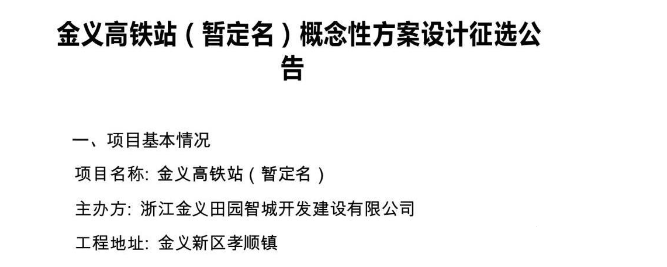 一、项目基本情况项目名称: 金义高铁站(暂定名)